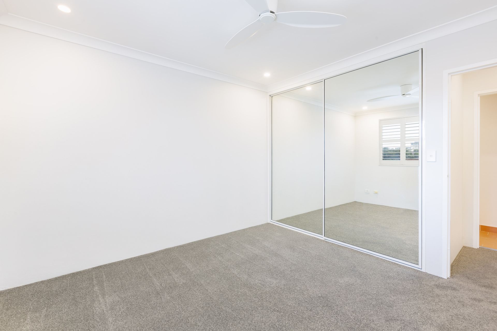 - Two bedrooms, both with mirrored built in wardrobes, ceiling fans and white plantation shutters
