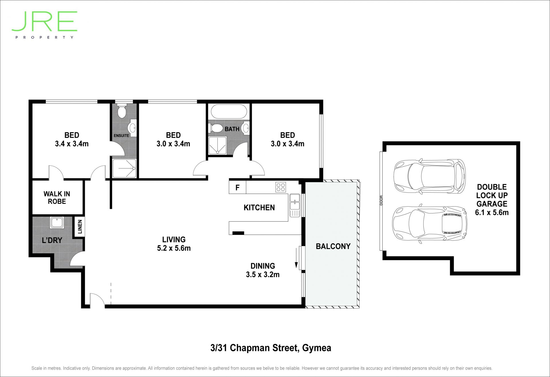 Three large bedrooms, main with walk in robe and ensuite