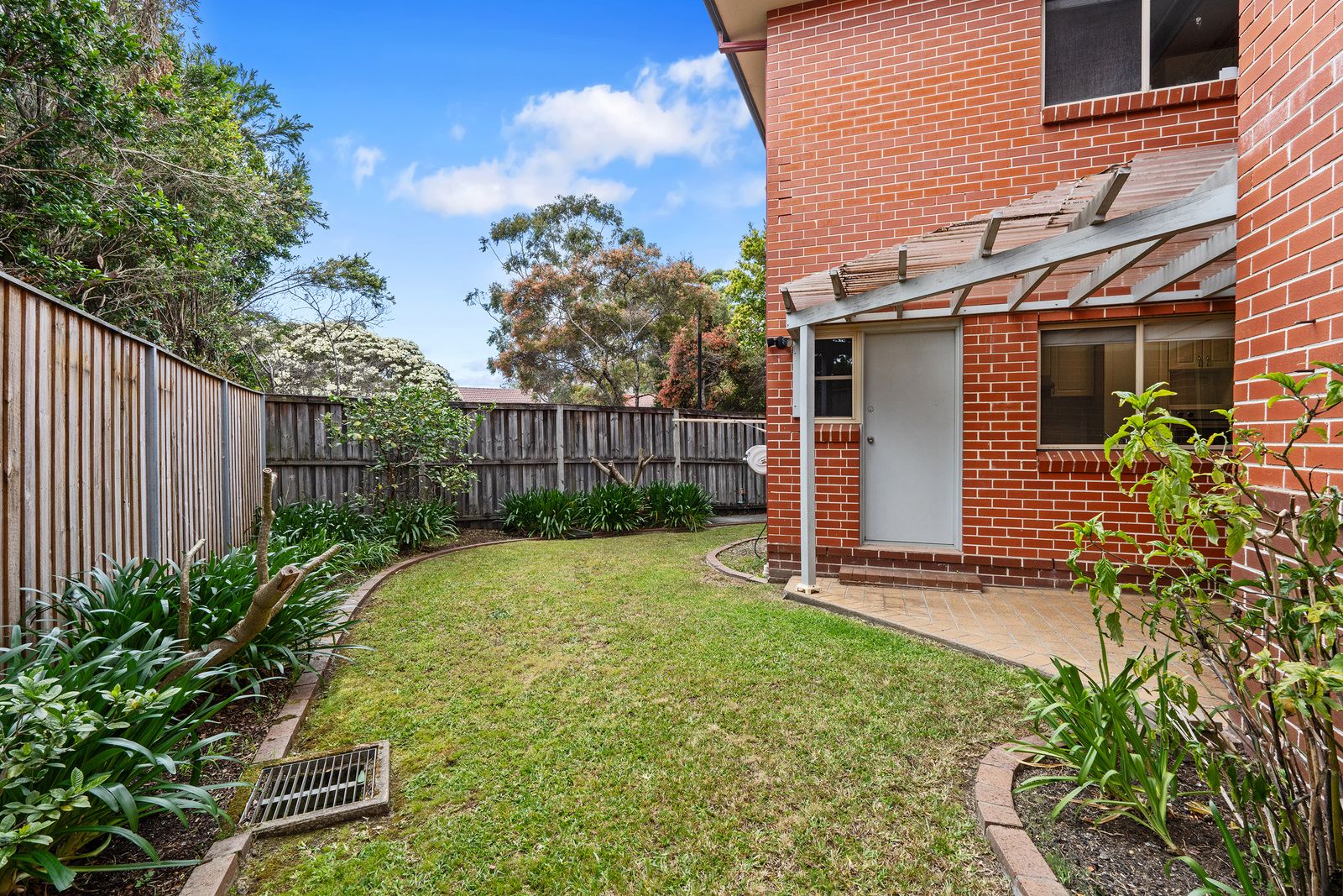 North facing wrap around grassed courtyard with gardens