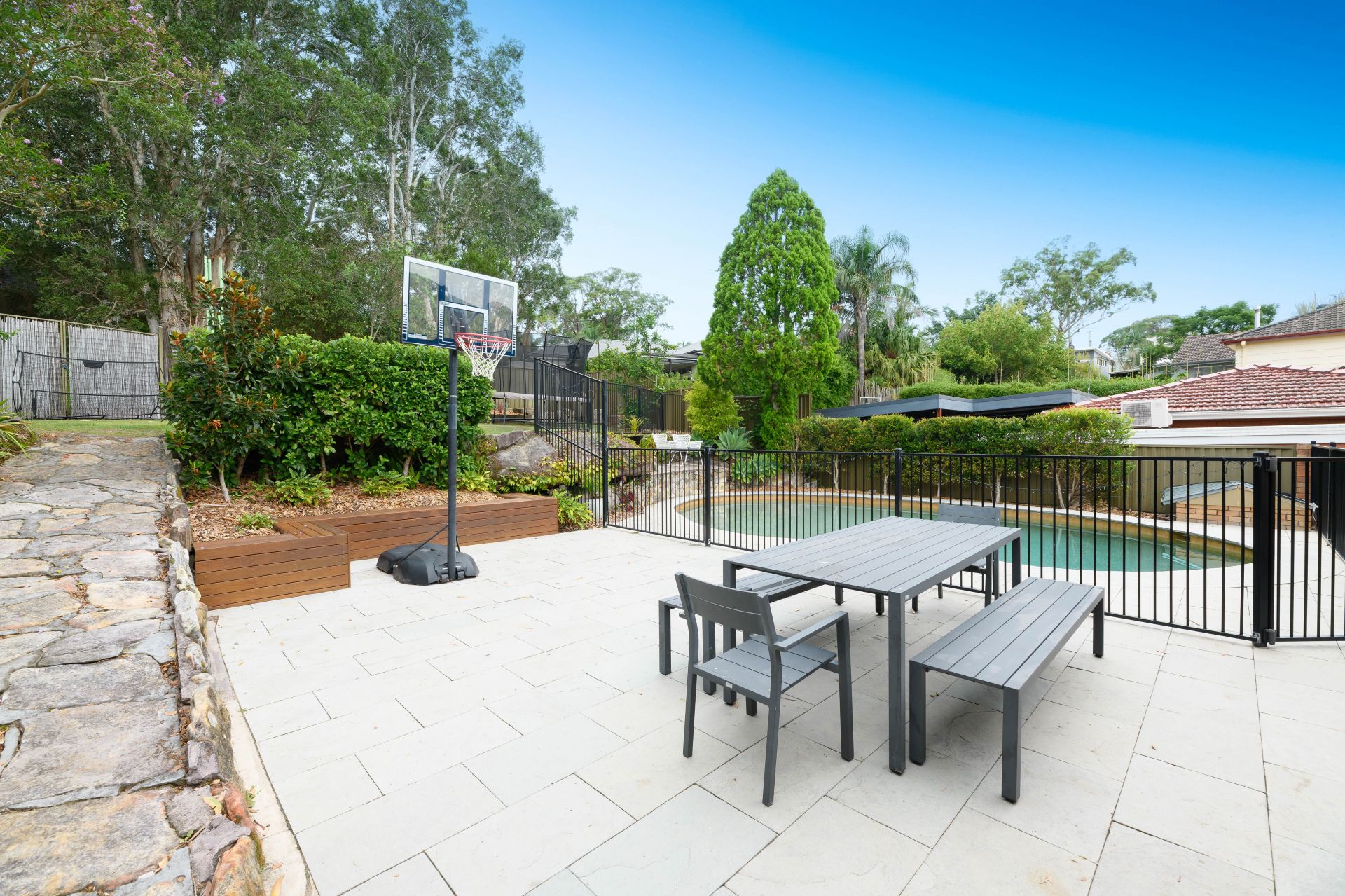 • In-ground pool with paved alfresco area and level grassed lawn