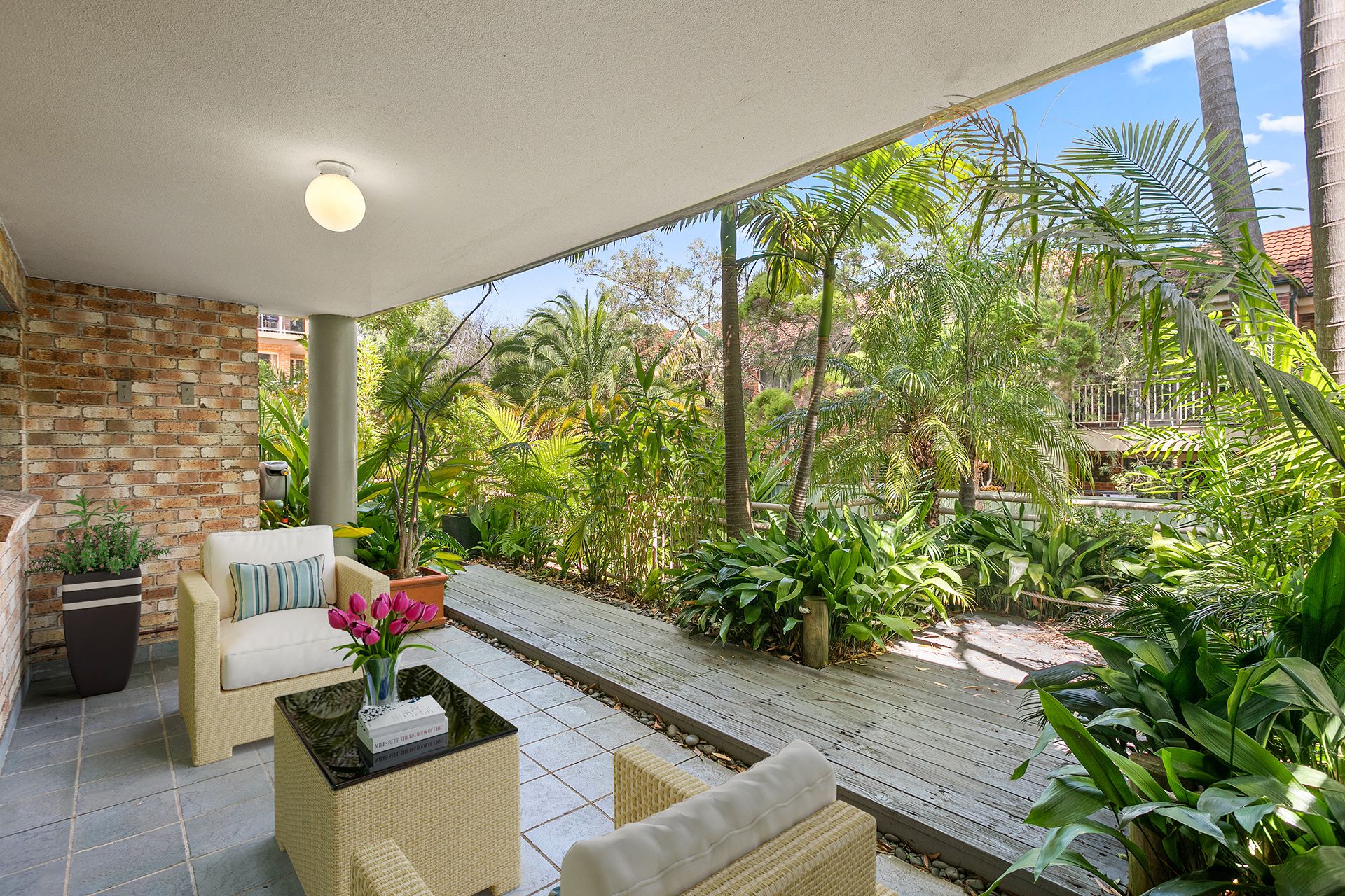 Peacefully nestled amongst a leafy outlook of tropical plantings and dappled sunlight in a tightly held boutique development, this ground floor apartment offers an attractive option for market entrants, investors and downsizers alike. Perfectly presented and filled with natural light, the spacious open plan living and dining space opens to a west-facing private balcony and a fully equipped kitchen featuring custom cabinetry, stainless steel appliances and an abundance of storage space. Natural light and leafy outlooks complement the apartment and provide a lovely setting for rest and relaxation. Other features include two generously sized bedrooms with built-in robes, a bright central bathroom featuring floor to ceiling tiles, separate bath, shower and WC, convenient laundry and secure basement car parking.
