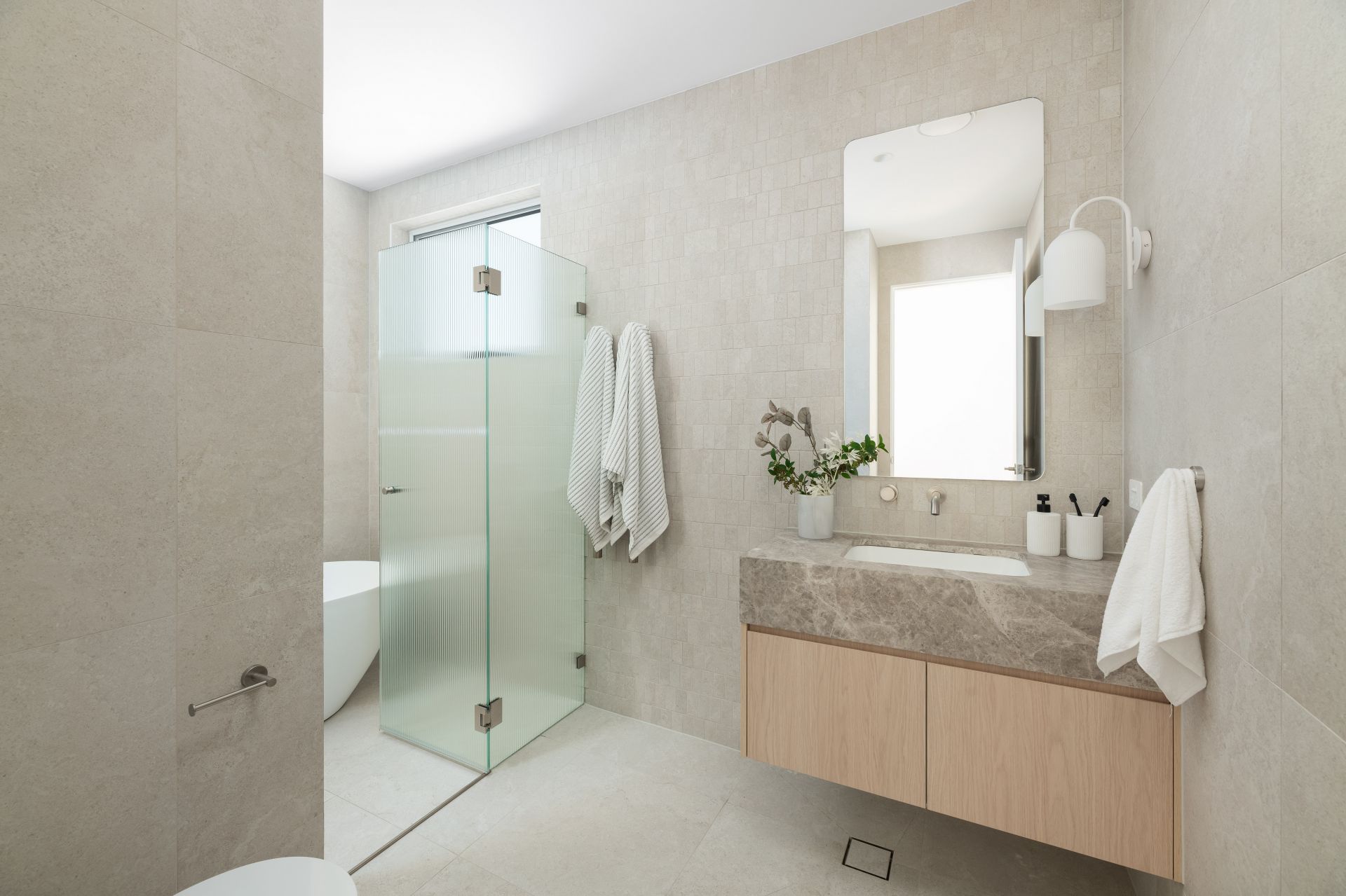 • Designer bathrooms with contemporary finishes; main includes separate bath and shower