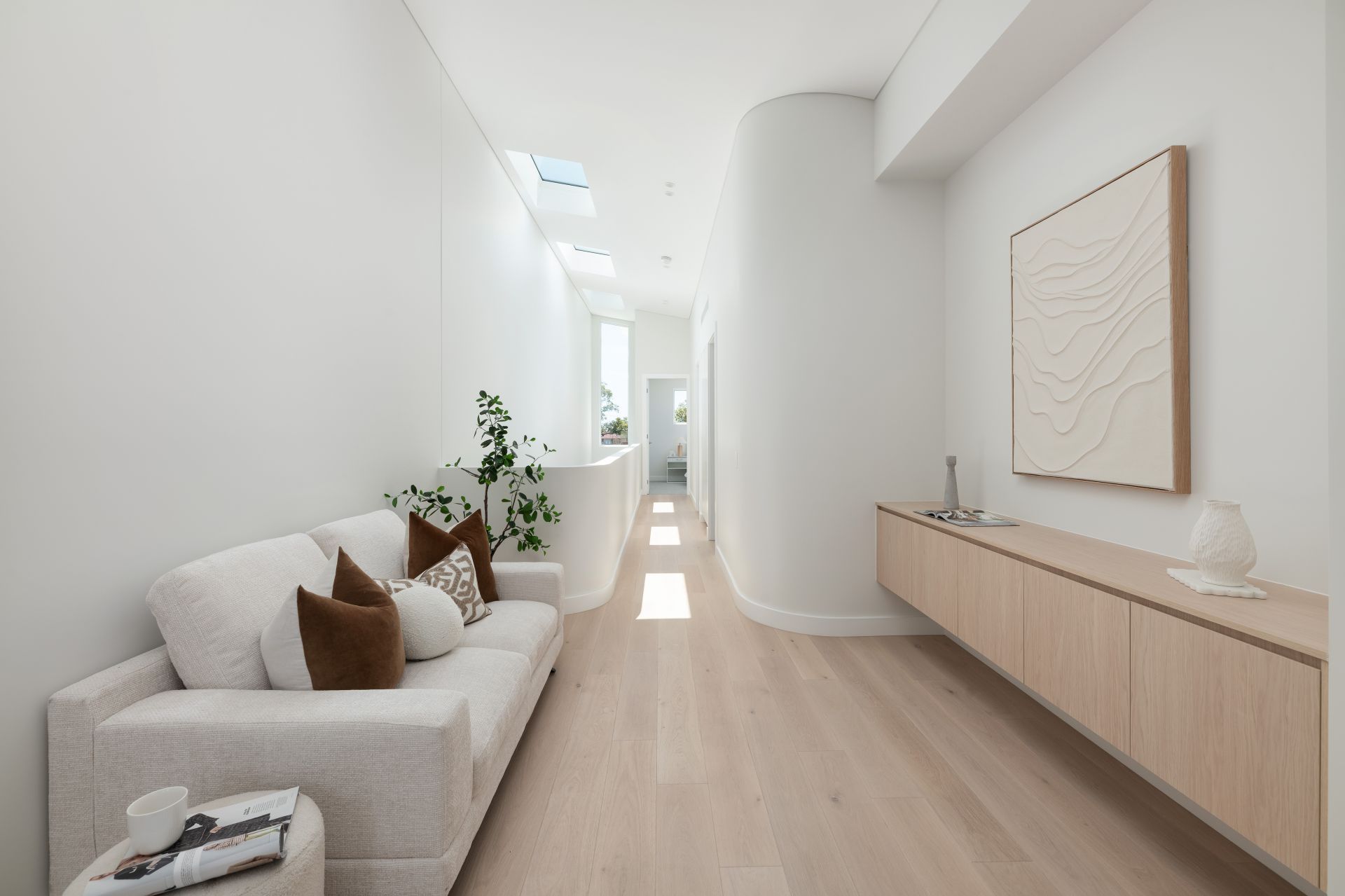 • Premium finishes include timber floors, curved walls with feature lighting & windows, gas fireplace and an abundance of Velux skylights